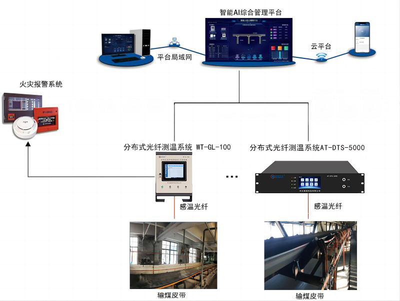 微探科技輸煤皮帶溫度監(jiān)測系統(tǒng)由火災(zāi)探測系統(tǒng)智能分布式光纖測溫主機(jī)、感溫光纖、監(jiān)控計(jì)算機(jī)、監(jiān)控管理軟件和消防系統(tǒng)聯(lián)動設(shè)備等組成,可以實(shí)時(shí)監(jiān)測輸煤皮帶兩側(cè)溫度變化,發(fā)現(xiàn)火災(zāi)隱患及時(shí)聯(lián)動火災(zāi)報(bào)警設(shè)備。搭配本公司智能AI綜合管理平臺,可在監(jiān)控計(jì)算機(jī)上直觀展現(xiàn)整個(gè)礦(廠)區(qū)所有輸煤皮帶的監(jiān)控全貌,形象標(biāo)注溫度異常位置,便于災(zāi)情撲救以及人員疏散。